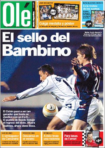 El otro día hablaba con otro de los autores de este blog acerca de los epígrafes de Olé, y el título de algunas de sus notas, y recordé una tapa del 2/09/2004, cuando después de empatar 0-0 con Quilmes, San Lorenzo pasó de ronda en la Copa Sudamericana.