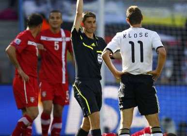 Parece que la segunda ronda de partidos no trajo buen futbol pero sí muchas emociones. La onda expansiva de los errores tontos de los nigerianos llegó hoy hasta el partido entre serbios y alemanes. Justamente Alemania, el equipo con menos errores no forzados en la historia de los mundiales, sufre la expulsión de su goleador por dos faltas menores en el primer tiempo. Se podría hablar del «castrillismo» que acecha al Mundial que, si bien protege a los jugadores, favorece mucho la simulación (el verdadero flagelo del futbol) y corta el juego. Pero bueno, eso no justifica a Klose (se habrá cerrado su sueño de ser goleador histórico de los mundiales?). Y luego erró un penal, bien atajado por Andrés Ciro. Increíblemente, otro serbio había tocado la pelota con la mano en el área sin ningún sentido, casi como si estuvieran manejados por un «joystic» aleman. Que pasará en este grupo? Ahora es un misterio. Nos queda la figura de Machín por la derecha (está claro que con Montenegro no podían jugar juntos), el pivoteo inútil del gigante delantero serbio, la floja actuación de Khedira (demasiado atento a las indicaciones del técnico) y no mucho más. Esperemos que para el próximo Mundial se vuelvan a juntar todos los ex-Yugoslavia e incluso pueden incluir a Grecia, Bulgaria, Rumania, Hungría y todo lo que esté por ahí y formen el Imperio Balcánico a ver si arman un equipo serio.  Y que los dirija Stojkovic o Bora.