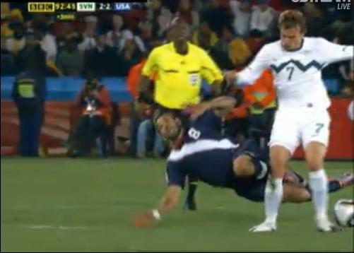 Pero esta jugada fue superada en torpeza por el último contrataque de USA, en el que Dempsey pisó la pelota y al caer lo lesionó mal a Pecnik que salió en camilla.
