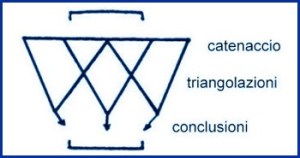 El «catenaccio» (encadenado) y la triangulación (que Brera llama geometría) es un fútbol de prosa: en efecto, está basado en la sintaxis, o sea en el juego colectivo y organizado: es decir, en la ejecución razonada del código. Su único momento poético es el contraataque, con el gol añadido (que, como hemos visto, no puede más que ser poético). En definitiva, el momento poético del fútbol parece ser (como siempre) el momento individualista (gambeta y gol; o pase inspirado). El fútbol en prosa es el del llamado sistema (el fútbol europeo). Su esquema es el siguiente: