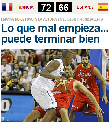 España, campeón del Mundo y de Europa, perdió contra Francia 72-76 tratando de emular lo hecho en Sudáfrica. Pero los medios españoles lejos de criticarlo lo tomaron como una cábala y titularon: