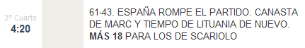 Faltando 4:20 para terminar el 3er. cuarto, Marc Gasol ponía el partido 61-43 y Marca en su minuto a minuto decía: