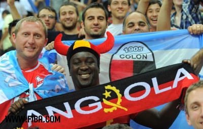 La hinchada argentina se hizo sentir como siempre aunque podemos asegurar que se produjeron algunas confusiones que por suerte no llegaron a ocasionar disturbios, como la de este hincha Angoleño engañado por una bandera argentina.