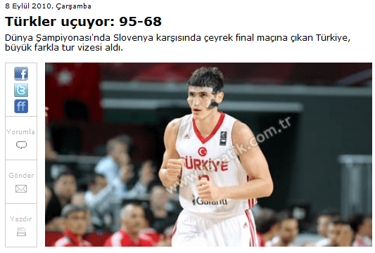 Se poco de turco, pero dice algo así como que por los cuartos de final del campeonato Mundial le ganaron fácilmente a Eslovenia. Arriba dice Moscas Turcas (calculo que quiere decir Turcos Voladores)