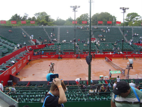 1. Esto para enseguida. Luego de un error de cálculos de aproximadamente 2 horas, la lluvia cesó y entró en acción el novedoso sistema de secado de cancha, importado directamente desde Roland Garros.