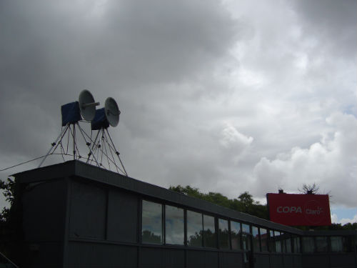 Justo arriba de las cabinas de "transmision". Qué "casualidad"