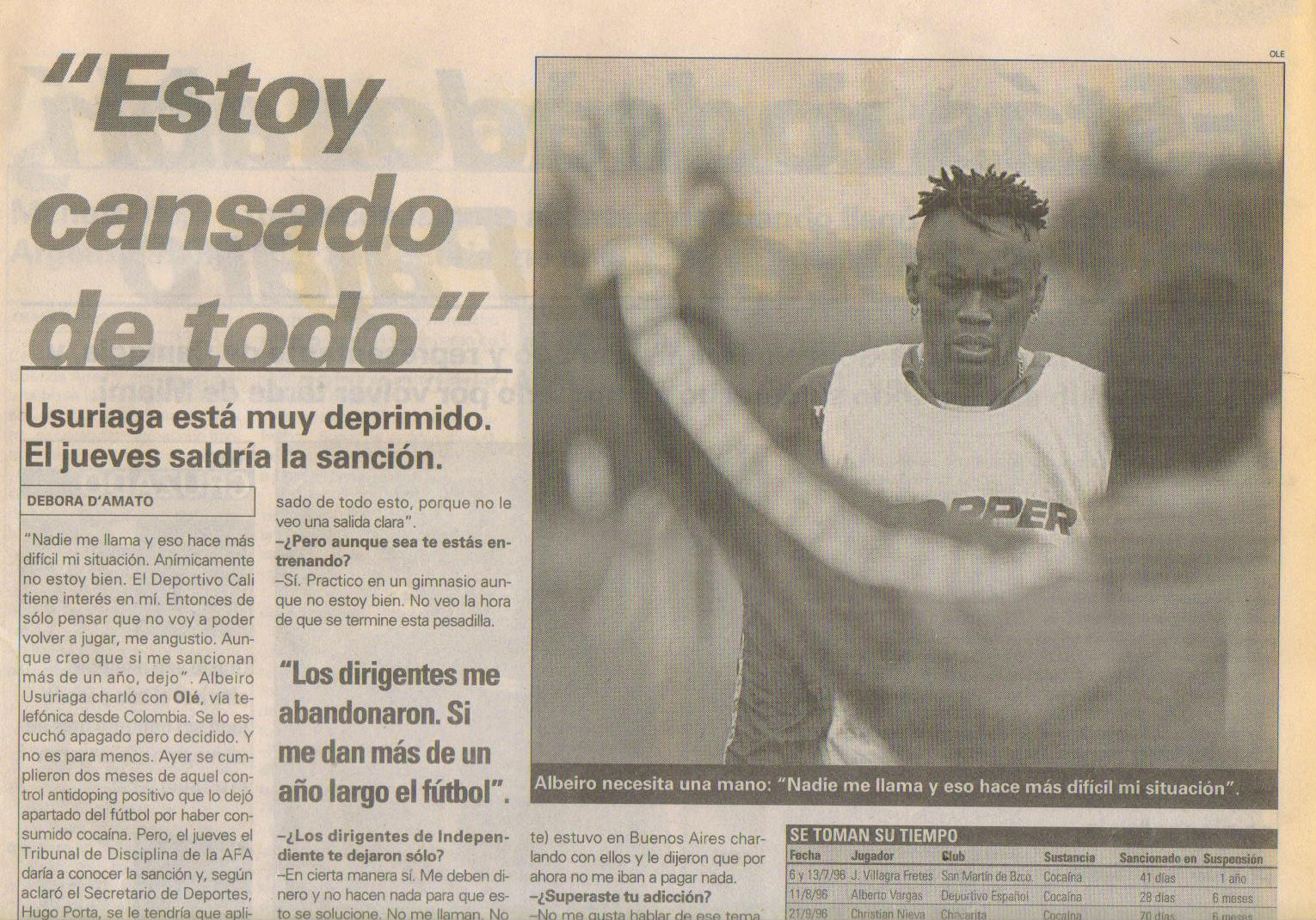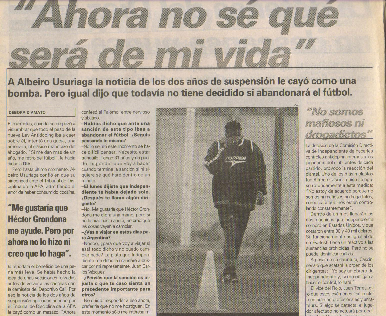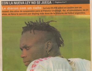 Lo más asombroso fue encontrar notas sobre un doping positivo que le dio al Palomo Usuriaga cuando jugaba en Independiente. Día tras día el periódico siguió el caso. Sabiendo lo que sucedió años más tarde con el jugador, resultan elocuentemente premonitorias las formas de referirse a él y a la noticia del doping y la suspensión.