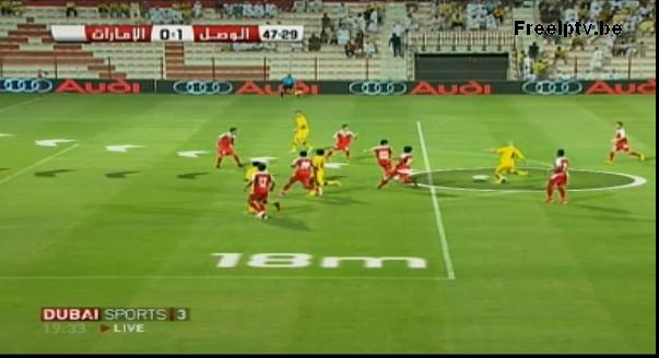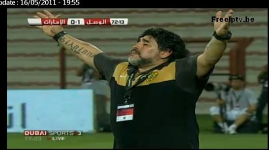 en el entretiempo de este partido encontramos la señal en vivo de Dubai Sports 3 y nos enganchamos a ver al Al Wasl de Diego Armando Maradona!