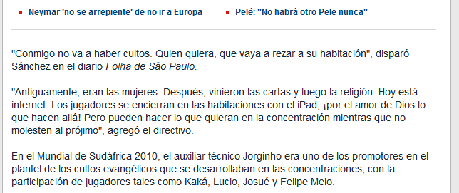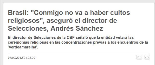 El Director de Selecciones Nacionales de la Confederación Brasileña de Futbol se sumó a mi campaña por un futbol laico. Desde acá, humildemente, mi agradecimiento, sobre todo porque lo hizo antes de que yo empezara con dicha campaña, lo cual le da más valor aún.