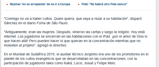 Pelé maradonizado habla en tercera persona de sí mismo y el laico Andrés Sanchez se opone a Dios diciendo "por el amor de Dios!"