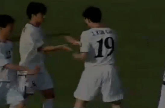 Jang Kuk-Chol, autor del segundo gol, festeja con su compañero con el famoso juego infantil surcoreano men-su. ¿Habrá represalias?
