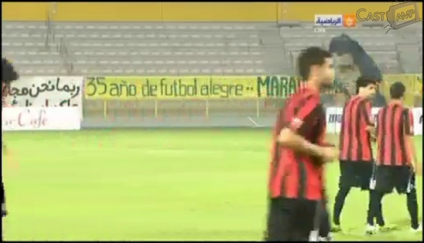 Rápidamente, sin embargo, se iba a poner arriba el Muharraq, también conocidos como «las Mojarritas de Bahrein» (?) (bueno, conocido por nosotros así). El gol vino en un corner donde a los defensores amarillos se les escapó la tortuga. Luego del gol es expulsado el arquero Nasser por agarrarse con los delanteros que vinieron a llevarse la pelota. Ya todo será cuesta arriba.