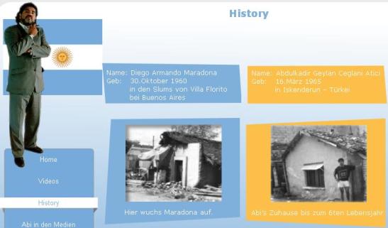 Rozando lo increíble, el apartado de “historia” muestra paralelismos forzados tremendos: hasta la casita de Villa Fiorito es parecida a la casa natal de Abi (aunque nos consta por varios documentales que la casa de los Maradona en Fiorito no era la que sale en la foto ni por las tapas!)