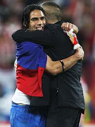 Emotivo abrazo entre Falcao y el cholo tras recibir su estatuilla