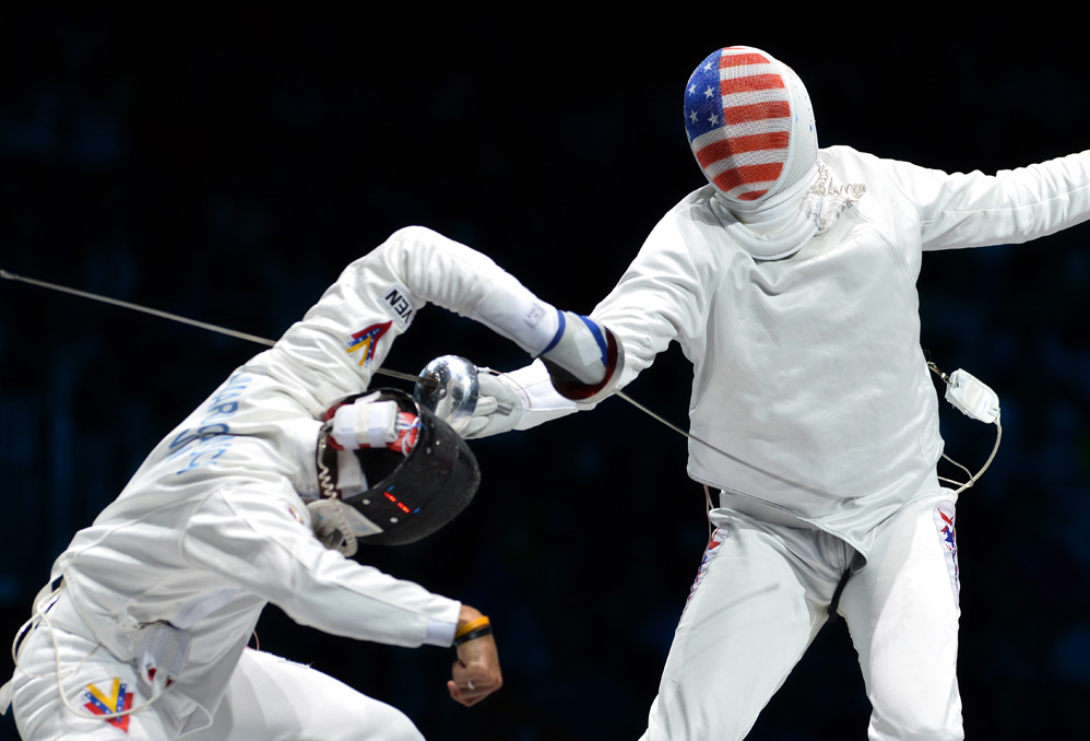 Rubén Limardo, oro olímpico y actual número, en plena lucha antiimperialista contra un tirador-metáfora americano
