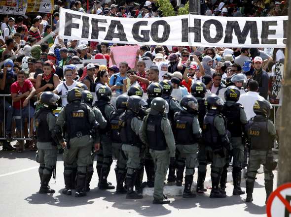 «Si esto vuelve a suceder, tendremos que preguntarnos si tomamos la decisión equivocada al otorgar la sede, el gobierno ya sabe que no debe haber disturbios en el Mundial del próximo año, deben trabajar para que esto no vuelva a suceder. Estamos convencidos de que el gobierno, y especialmente la presidenta, encontrarán las palabras y las acciones para evitar que se repitan. Tienen un año para hacerlo. Nosotros no tenemos que aprender lecciones de las protestas en Brasil, los políticos de Brasil tienen que hacerlo, la FIFA no puede ser responsabilizada por la desigualdad social del país.» (Joseph Blatter)