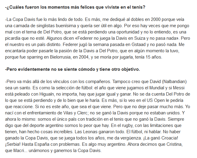 Recordemos que Lucas Arnold, quien nos emociona con esta arenga (con un claro guiño a Marx) y, a la vez, nos desliza al pasar que Nalbandian es un garca, es integrante del selecto grupo de tenistas argentinos que tiene de hijo a Federer y, por lo tanto, palabra autorizada.