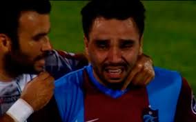 Pero el Rizespor también está en la cancha, y tiene 11 tipos que corren detrás de la pelota para meterla, y así llega a empatarle transitoriamente a los 43 del 1er tiempo al Trabzonspor. La gente putea un poco desde las tribunas a sus jugadores que no pudieron mantener la ventaja (yo lo hubiera hecho) (putear, no mantener la ventaja), y en este momento es cuando Volkan Şen mira a su tribuna, le tira una patada al aire, estalla en un berrinche de llanto y empieza a pedir el cambio. Volkan cruza toda la cancha llorando mientras los compañeros, los rivales, y hasta el referi lo abrazan y le piden que se calme y se quede.