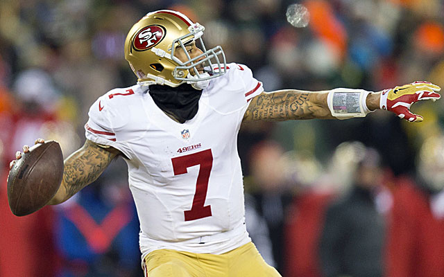 Colin Kaepernick , «Barrilete Kosmiko», tirando pases sin guante en medio de un frío de cagarse para llevar a los forinaiers al siguiente escalon hacia el Super bowl.