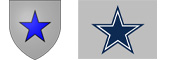 Y entonces George Martin tuve que cumplir con su parte de la apuesta: darle un muerte espantosa a su rival en una de sus novelas. Para esto, creo el personaje de Ser Patrek of King’s Mountain y le dio una heráldica muy similar a la de los Cowboys: una estrella azul sobre un fondo blanco/gris. De hecho, si ponemos el escudo de armas de Ser Patrek al lado del logo de los Cowboys, casi no hay diferencias: