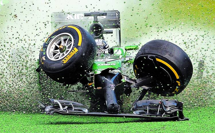 Empezó el show de la Fórmula 1, el peor deporte del mundo. Acá, un auto verde choca al auto de Massa y lo capta una cámara. Nos suena de algún lado.