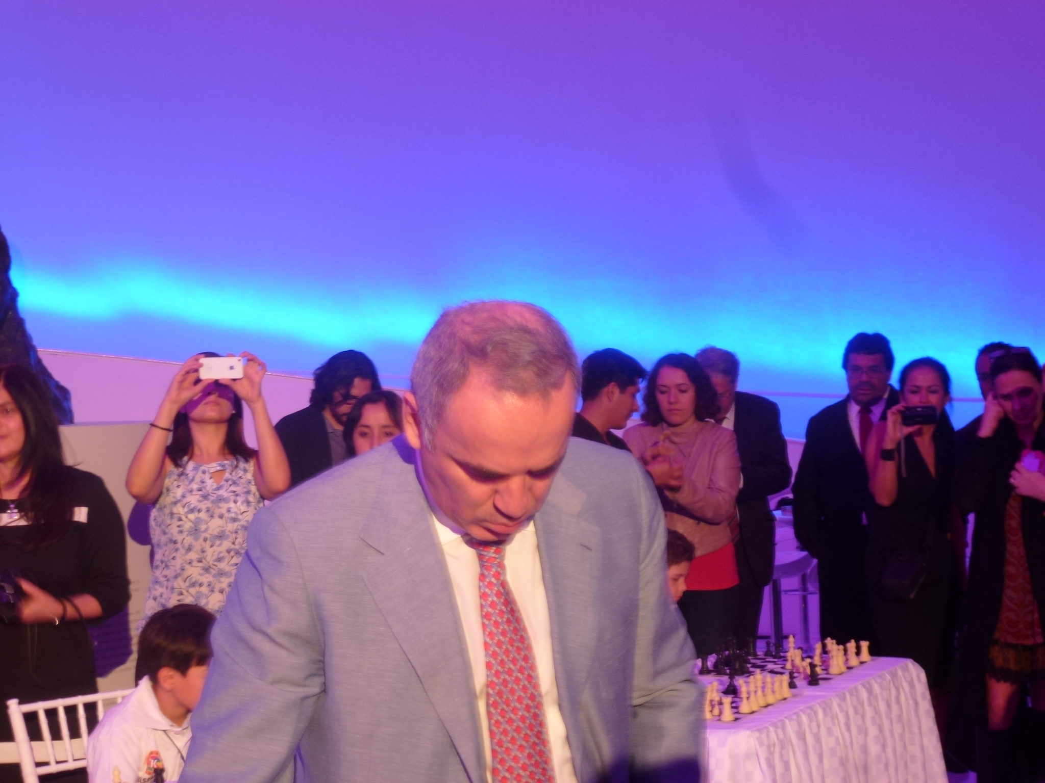 Invitados por nuestro amigo Mauricio de Esquina Boxeo y Hermano Cerdo, nos trasladamos al Museo Soumaya, propiedad de Carlos Slim, donde se lanzó la Fundación Kasparov para Iberoamérica, con la presencia del gran Garry, ídolo de nuestra juventud supernerd, y dueño de un estilo agresivo, arriesgado, que incluye entre otras cosas grandes sacrificios de piezas para encontrar espacios y ganar sorpresivamente. El ajedrez que le gusta a la gente.