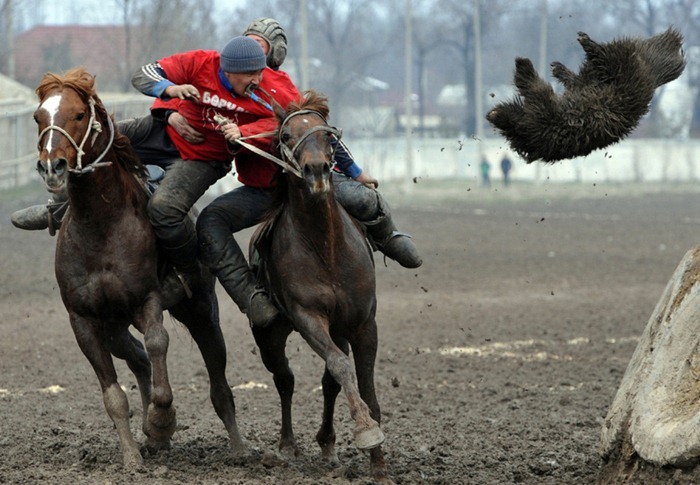 Hoy vamos a hablar del buzkashi. El buzkashi es el deporte nacional de Afganistán, aunque hay vestigios en toda Asia central y algunos aseguran que su origen tiene lugar en Uzbekistán. El juego consta de dos equipos de jinetes y sus caballos, y el objetivo es llevar una cabra muerta al fondo de la cancha. Lo que otrora aquí se hacía con un pato, en estas tierras asiáticas lo hacen con una cabra entera. Aunque en realidad no entera, pues para jugar se le saca la cabeza, lo que ya no sé si interpretar como un gesto de decoro o de mayor crueldad.