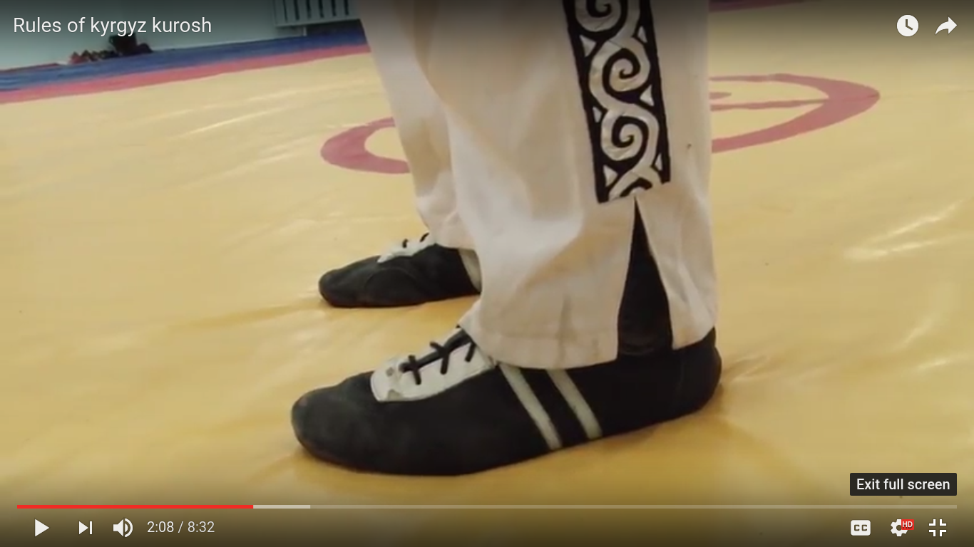 Se trata de una tradicional lucha de Kyrgyzstan. Los luchadores se atan una cinta a la cintura, de la cual el oponente lo deberá tomar para intentar derribarlo o sacarlo del círculo de lucha. Hay cantidad de formas de darlo vuelta, siempre tomándolo del cinto y sin golpearse.