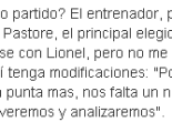 Podemos probar, Sr Dictador Batista, antes de quedar eliminados en primera fase, de jugar con un conductor, un armador de juego? Poné a Pastore, por favor! Yo formaría con Banegas … Sigue leyendo