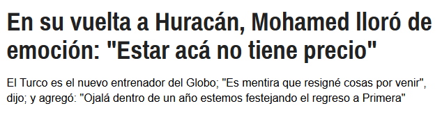 Entre tanto humo de quien viene a robar pero que recuerda todo lo que «resignó» para venir o de quienes se quieren despegar de los malos momentos (léase Ramón Díaz y su «yo no descendí»), una bocanada de aire fresco (libre de humo):